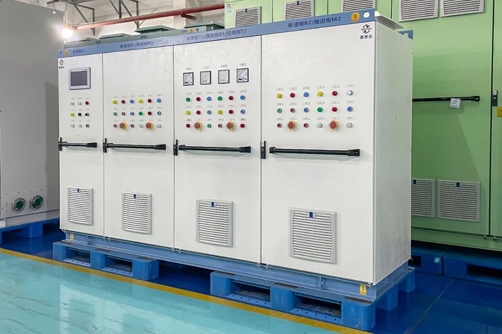 該船船長(zhǎng)73m,船寬13.8m,吃水3.8m,可搭載110個(gè)標(biāo)準(zhǔn)集裝箱,賽思億為其提供一套基于直流組網(wǎng)技術(shù)的S-Renewable新型動(dòng)力系統(tǒng)和集裝箱式電池系統(tǒng),其核心設(shè)備采用賽思億自主知識(shí)產(chǎn)權(quán)的國(guó)產(chǎn)變頻電控設(shè)備,日前已正式生產(chǎn)完畢,完成CCS船檢取證工作,等待交付船廠。集裝箱式電池系統(tǒng)配置2個(gè)集裝箱,整船鋰電池容量共計(jì)3080kWh,目前正在緊鑼密鼓的生產(chǎn)中。