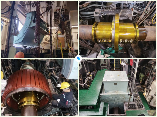 “KANARIS” 177000DWT散貨船,船長282m,入級ABS船級社,改造方案搭載中船賽思億分半式永磁抱軸電機+變頻器+變壓器的軸發(fā)改造方案,軸發(fā)系統(tǒng)額定功率1200kW,同時對原船功率管理系統(tǒng)(PMS)和主機遙控系統(tǒng)(ECS)進行改造,可實現(xiàn)降功率運行及轉速低時自動啟動發(fā)電機組,保護電站及船舶穩(wěn)定運行。作為全流程 EPC 總承包項目,中船賽思億全程主導了從前期3D掃描、方案布置設計、生產制造到安裝及調試等全鏈條服務。