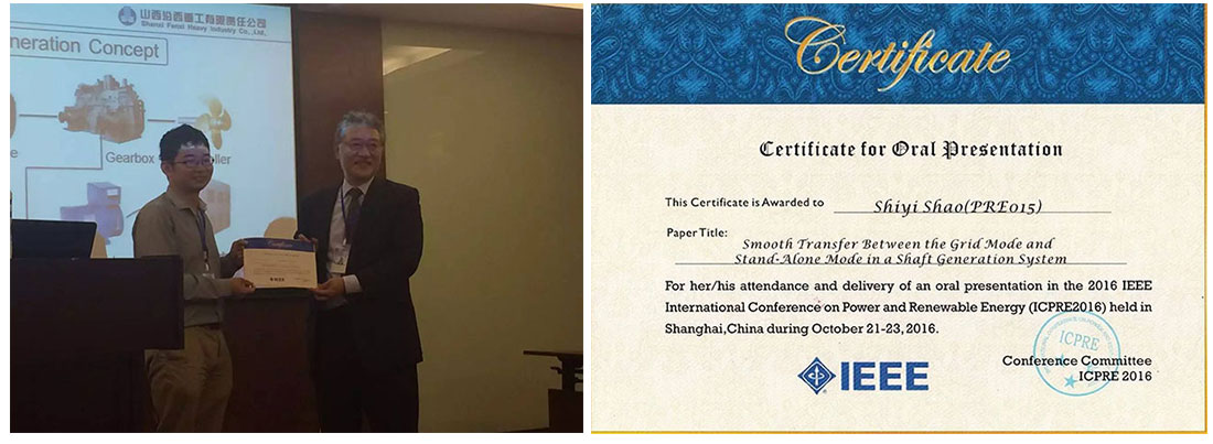 精彩的主題演講及大會報告之后,會議邀請優(yōu)秀論文的作者北京賽思億副總經(jīng)理邵詩逸在專題會議報告廳做了題為《Smooth Transfer Between the Grid Mode and Stand-Alone Mode in a Shaft Generation System》(軸帶發(fā)電系統(tǒng)中并網(wǎng)模式和獨網(wǎng)模式之間的平滑切換)的報告。該課題為軸帶發(fā)電系統(tǒng)應用中的關鍵難題,而這一難題的解決可以為用戶提供功能更強大、使用體驗更好的軸帶發(fā)電系統(tǒng)。